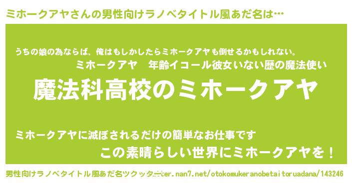 | 女子向けラノベタイトル風あだ名 | 『ミホークアヤアンティーク』 |