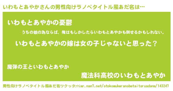 | 女子向けラノベタイトル風あだ名 | 『いわもとあやか様がみてる』 |
