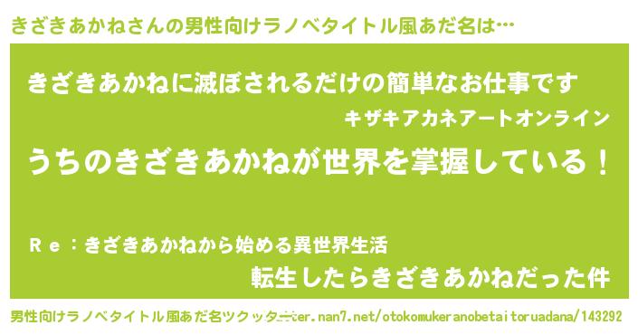 | 女子向けラノベタイトル風あだ名 | 『男装きざきあかねの憂鬱な任務』 |