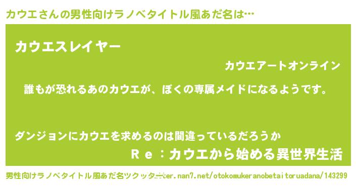| 女子向けラノベタイトル風あだ名 | 『異世界でカフェカウエを開店しました。』 |