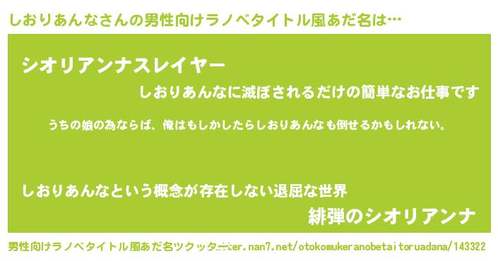 | 女子向けラノベタイトル風あだ名 | 『しおりあんなの婚約者』 |