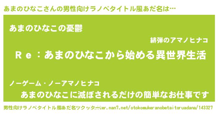 | 女子向けラノベタイトル風あだ名 | 『あまのひなこストレイドッグス』 |