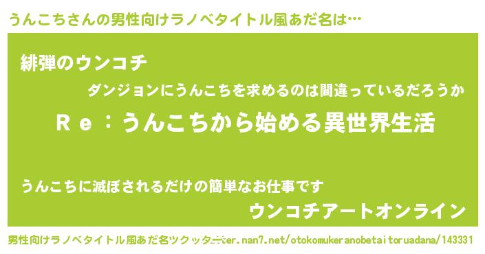 | 伝説のあだ名 | 『封印されし竜騎士うんこち』 |