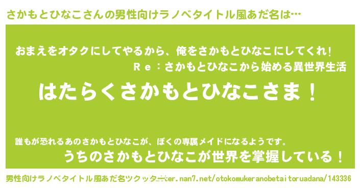 | ヘコむあだ名 | 『さかもとひなこ(小並感)』『さかにー』 |