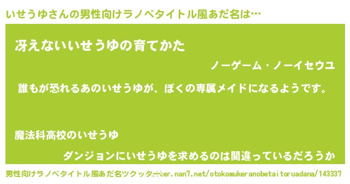 | ヒーロー風カッコイイあだ名 | 『ネオイセウユ』『幻影騎士イセ』 |