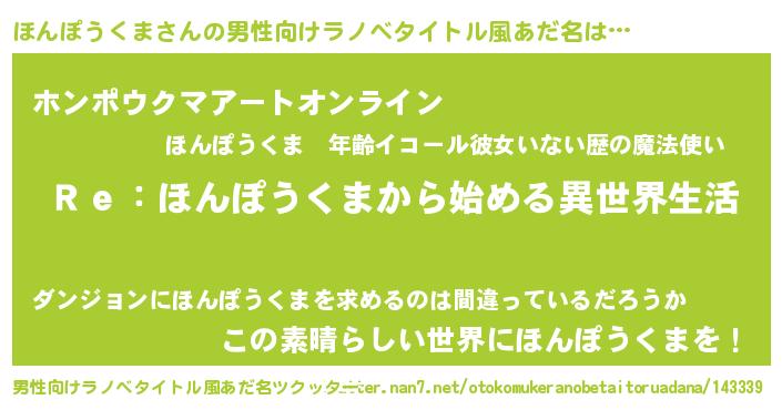 | 意味不明あだ名 | 『自称ほんぽうくま』 |