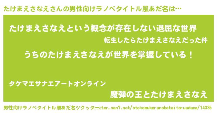 | 意味不明あだ名 | 『永久保存たけまえさなえ』 |