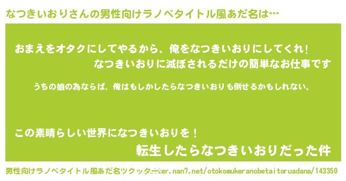 | 胡散臭い通販商品みたいなあだ名 | 『運命の人と巡り会える高級そうな壺…その名も「なつきいおり」』 |