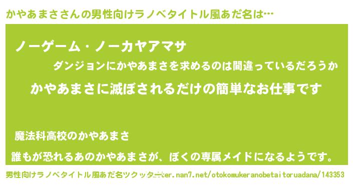 | ヘコむあだ名 | 『かやあまさ(小並感)』『かやっ子』 |