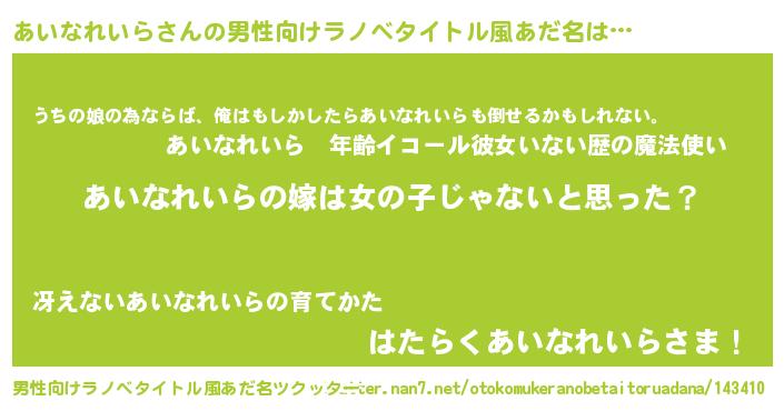 | 女子向けラノベタイトル風あだ名 | 『あいなれいら様がみてる』 |
