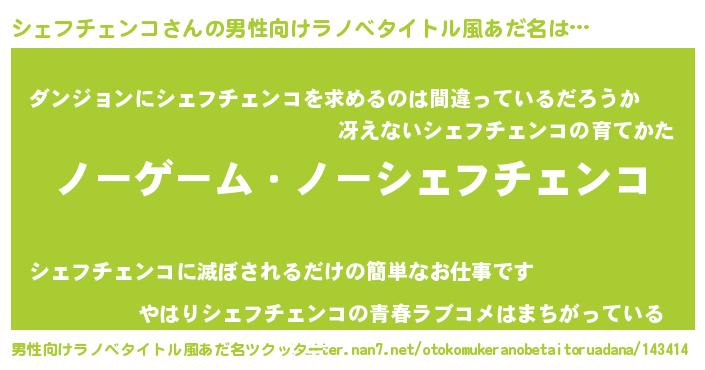| 女子向けラノベタイトル風あだ名 | 『シェフチェンコ恋絵巻』 |