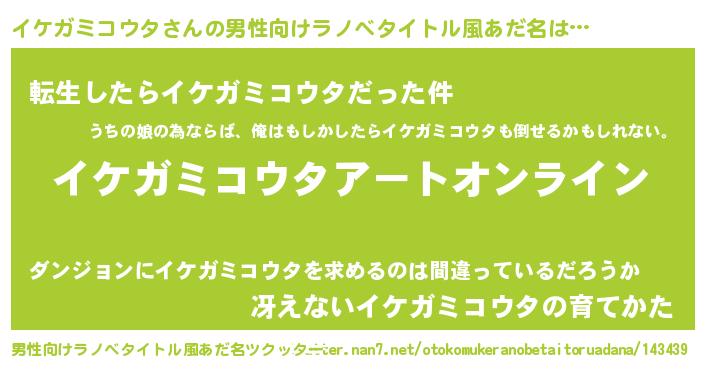| 女子向けラノベタイトル風あだ名 | 『イケガミコウタ姫と円卓の騎士』 |