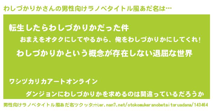 わしづかりかさんの男性向けラノベタイトル風あだ名をツクッター!
