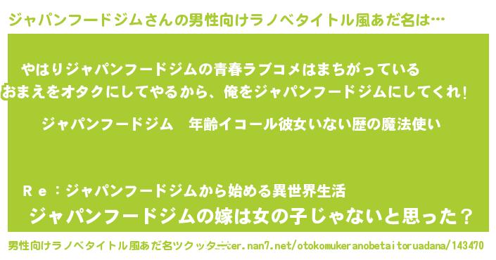 | 女子向けラノベタイトル風あだ名 | 『ジャパンフードジムの玉の輿計画!』 |