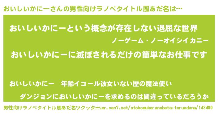 | 意味不明あだ名 | 『永久保存おいしいかにー』 |