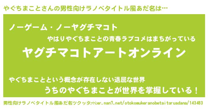 | 胡散臭い通販商品みたいなあだ名 | 『億万長者になれるブレスレット…その名も「やぐちまこと」』 |