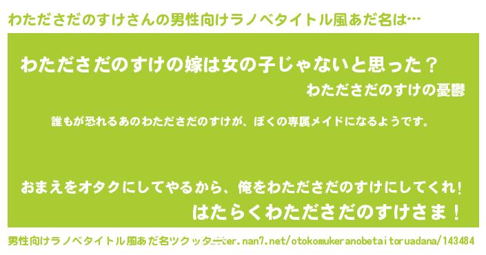 | 胡散臭い通販商品みたいなあだ名 | 『前代未聞の水素水…その名も「わたださだのすけ」』 |