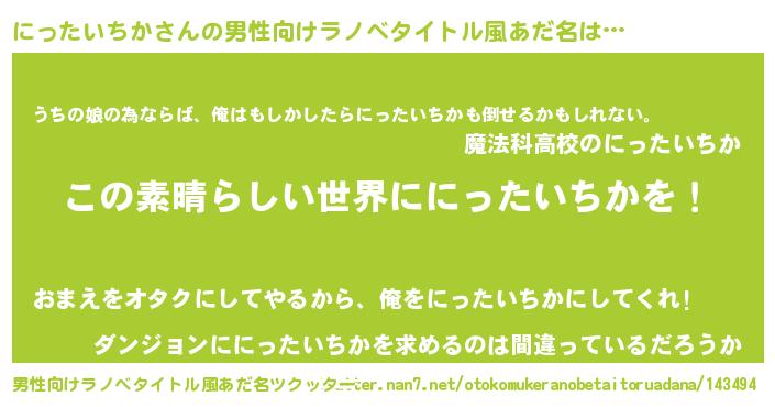 | 胡散臭い通販商品みたいなあだ名 | 『あなたにだけ特別に提供する限定10本のレアな日本酒…その名も「にったいちか」』 |