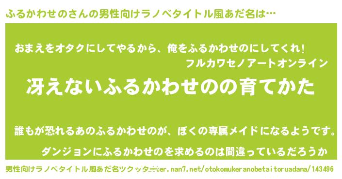 | 女子向けラノベタイトル風あだ名 | 『男装ふるかわせのの憂鬱な任務』 |