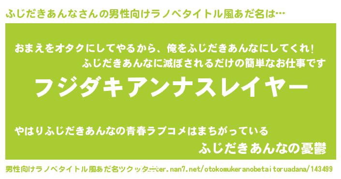 | 料理風あだ名 | 『ふじだきあんなごはん』 |