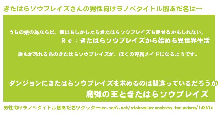 | 伝説のあだ名 | 『古文書に記された暗殺者きたはらソウブレイズ』 |