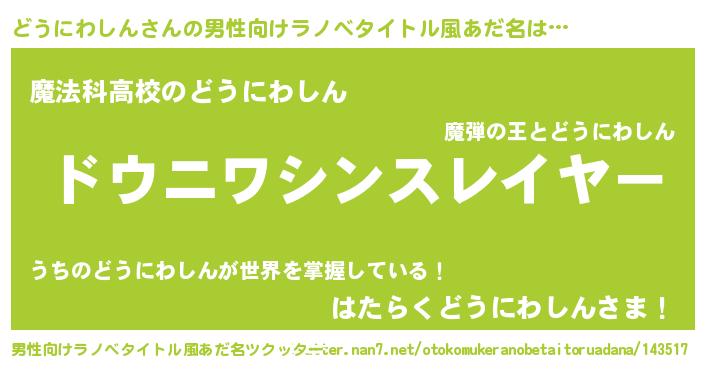 | ヘコむあだ名 | 『どうにわしん(笑)』『どうにゅー』 |