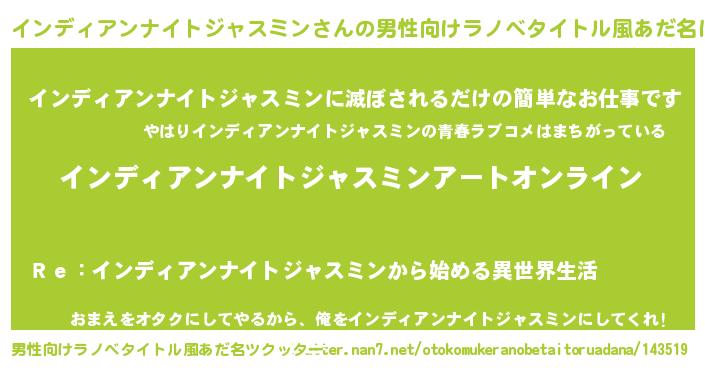 | 女子向けラノベタイトル風あだ名 | 『誰かこのインディアンナイトジャスミンを説明してください! ~契約から始まるウェディング~』 |