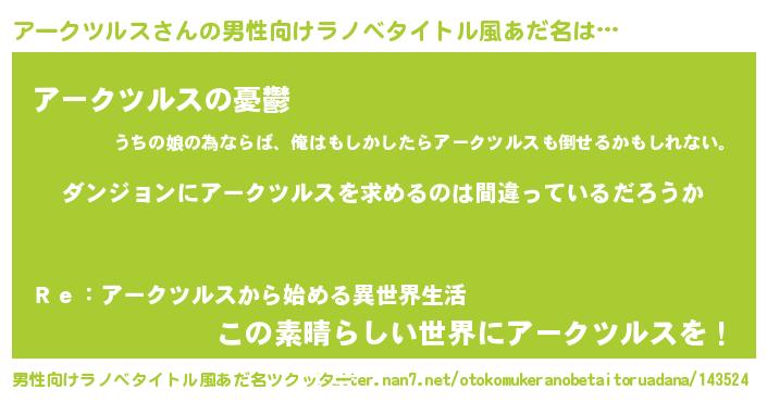 | 女子向けラノベタイトル風あだ名 | 『アークツルスは平凡を望む』 |