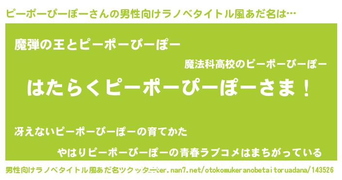 | 意味不明あだ名 | 『住所不定無職ピーポーぴーぽー(59歳)』 |