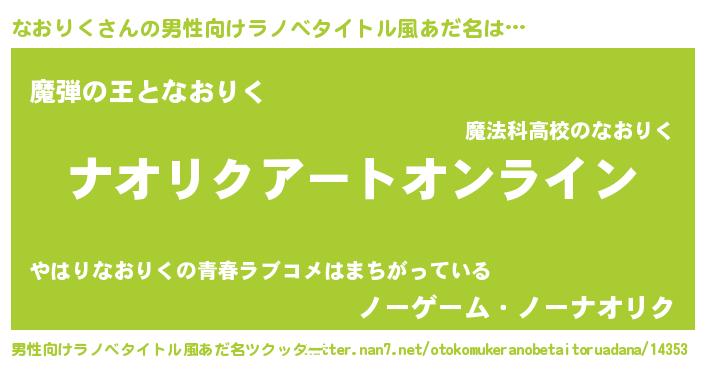 | ファンタジー風あだ名 | 『ナオフェル』『ヴァルナオーナ』 |