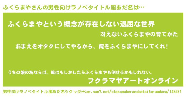 | 女子向けラノベタイトル風あだ名 | 『ふくらまや夫妻のなれそめ』 |
