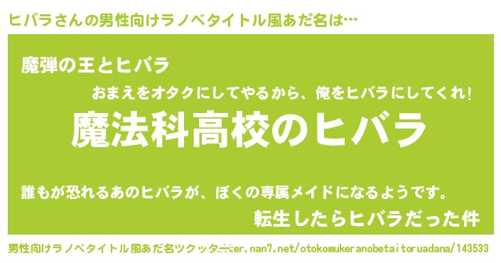 | ヘコむあだ名 | 『ヒバラ(笑)』『ヒバにー』『つくし』 |