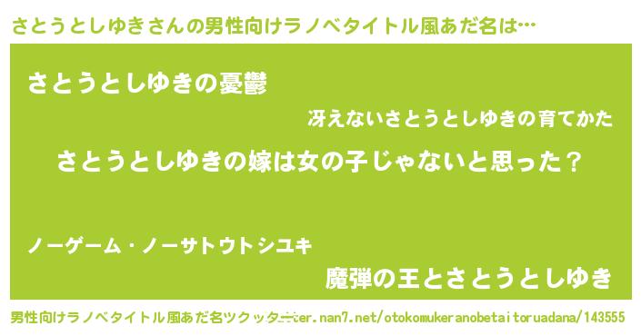 | 意味不明あだ名 | 『とにかく怪しいさとうとしゆき』 |