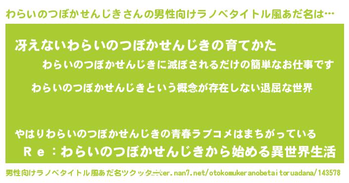 | ヘコむあだ名 | 『わらいのつぼかせんじき(小並感)』 |