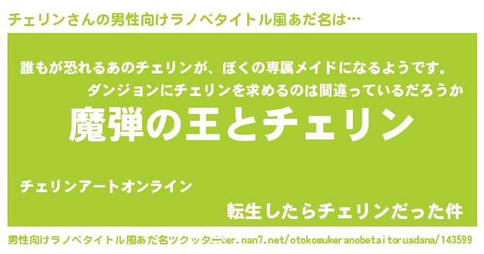 | 意味不明あだ名 | 『住所不定無職チェリン(10歳)』 |