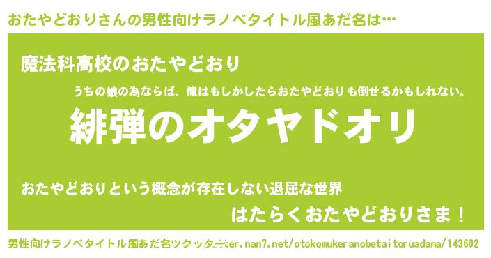 おたやどおりさんの男性向けラノベタイトル風あだ名をツクッター!