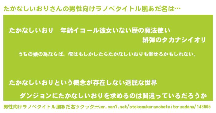 | 女子向けラノベタイトル風あだ名 | 『たかなしいおり伯爵の花嫁』 |