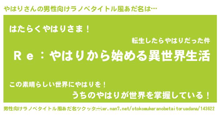 | 女子向けラノベタイトル風あだ名 | 『闇のやはり』『首の姫と首なしやはり』 |
