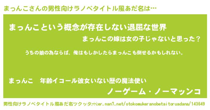 | 女子向けラノベタイトル風あだ名 | 『まっんこの婚約者』 |