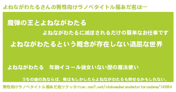 | 胡散臭い通販商品みたいなあだ名 | 『絶対に幸福をもたらす健康食品…その名も「よねながわたる」』 |