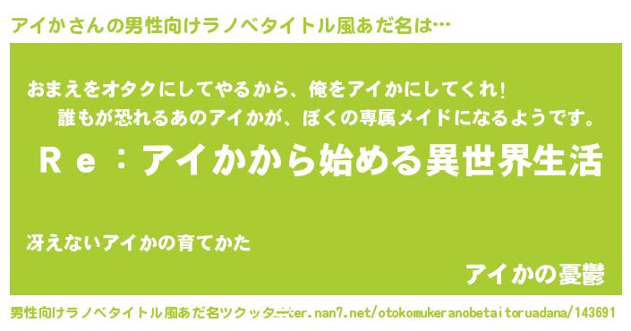 | ヒーロー風カッコイイあだ名 | 『究極戦士アイカ』『正義の使者アイか』 |