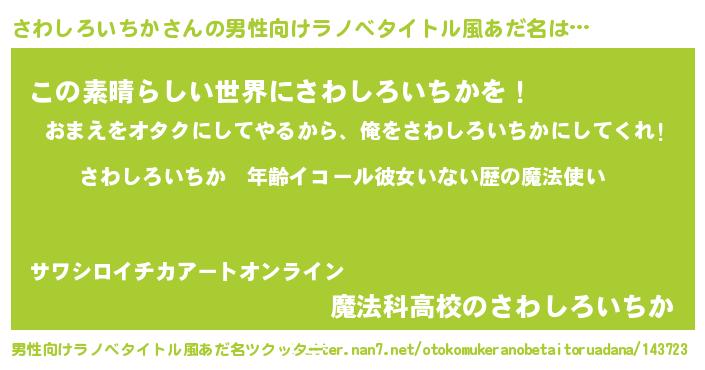 | 女子向けラノベタイトル風あだ名 | 『さわしろいちかの玉の輿計画!』 |