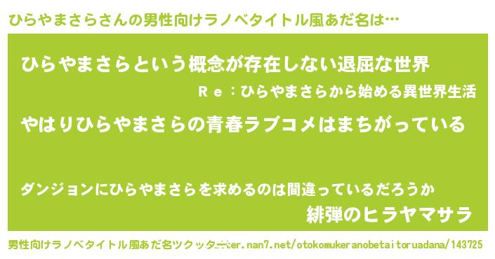 | 意味不明あだ名 | 『ひらやまさらフォーエバー』 |