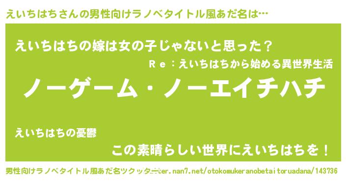 | 女子向けラノベタイトル風あだ名 | 『えいちはち恋絵巻』『闇のえいちはち』 |