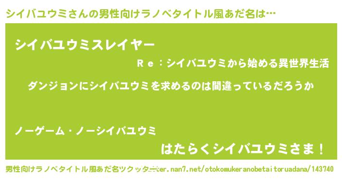 | 意味不明あだ名 | 『とにかく怪しいシイバユウミ』 |