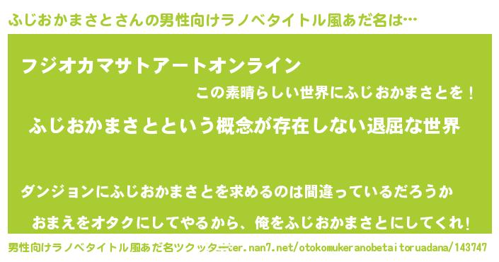 | 意味不明あだ名 | 『永久保存ふじおかまさと』 |