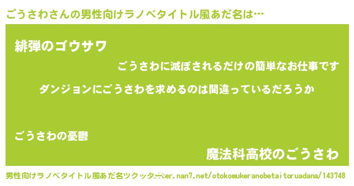 | 胡散臭い通販商品みたいなあだ名 | 『伝統あるサプリメント…その名も「ごうさわ」』 |