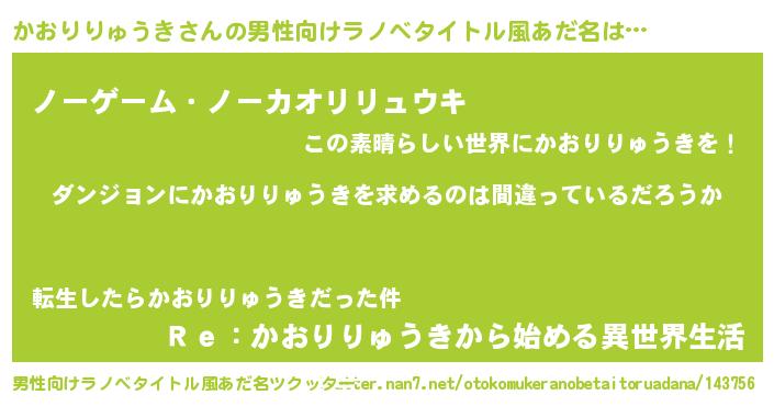 | 女子向けラノベタイトル風あだ名 | 『かおりりゅうきは平凡を望む』 |