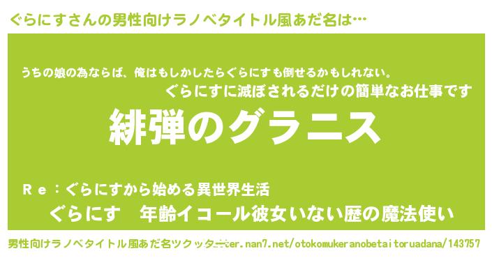 | 意味不明あだ名 | 『ぐらにすフォーエバー』『自称ぐらにす』 |
