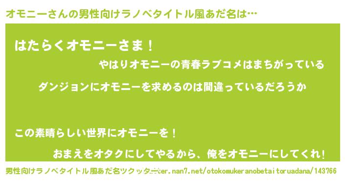 | 胡散臭い通販商品みたいなあだ名 | 『信頼と実績のサプリメント…その名も「オモニー」』 |